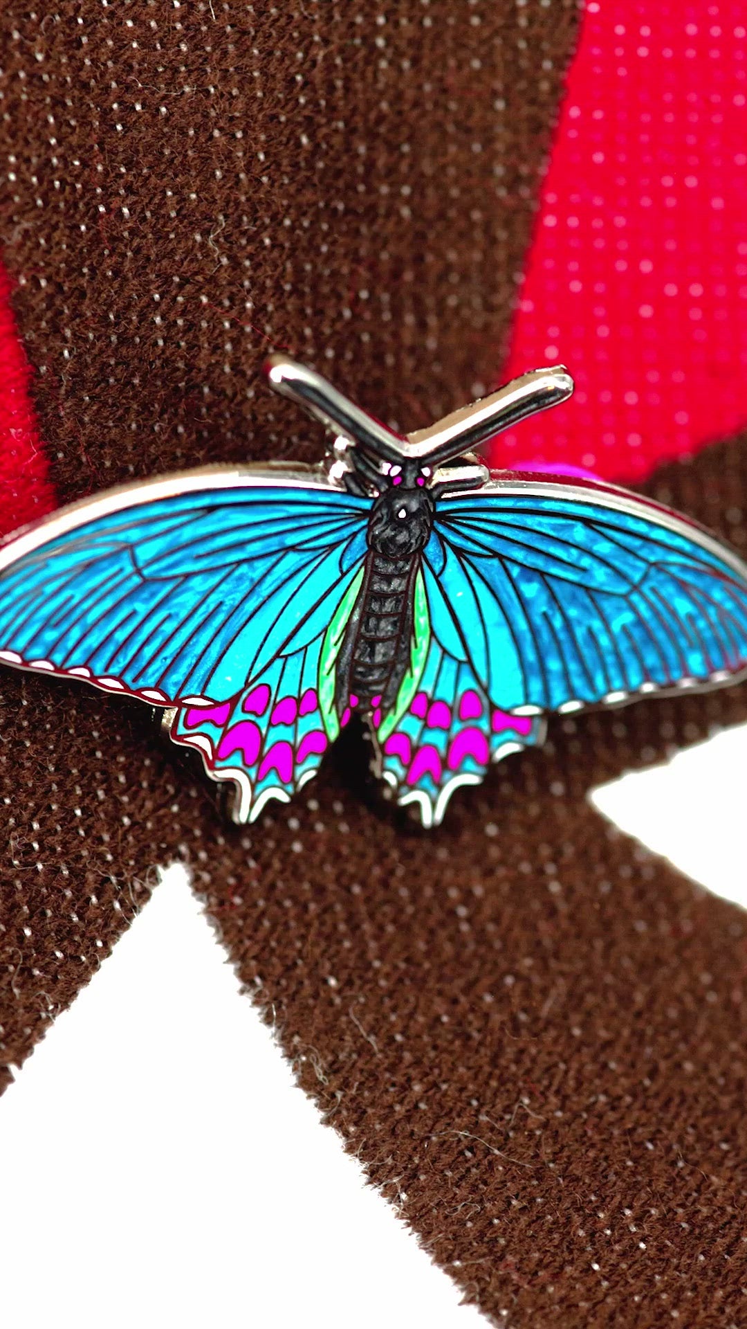 Did you miss the Parides photinus themed Bug Box? A few more Deluxe boxes are available now, featuring a butterfly ventral view enamel pin, dorsal view enamel pin (standard or LE 15 extra blue morph), a life cycle sticker sheet, an iron-on patch of the adult butterfly, a magnetic fact card, and a cozy caterpillar-inspired scarf.